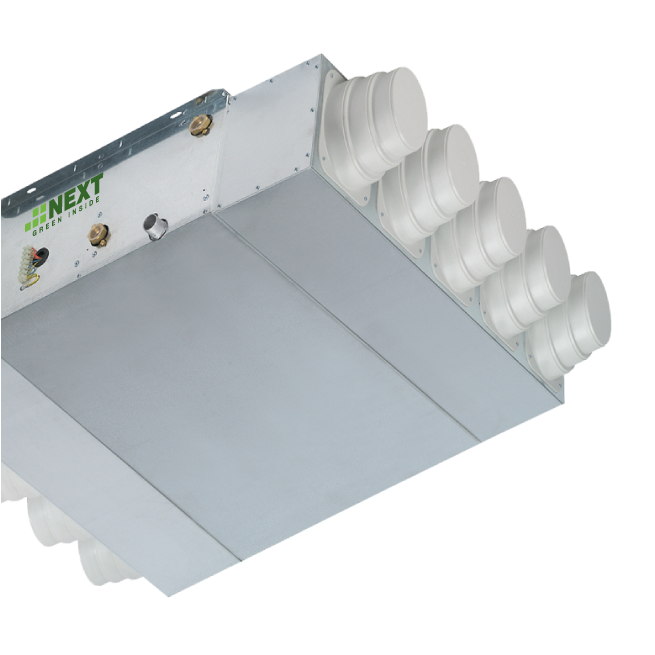 A very successful solution: the very reduced thickness, the clean design, together with a very smart accessories range, are giving to the product high functionality and high flexibility, making the product suitable to be installed where medium static pressure is required (Max 150Pa).